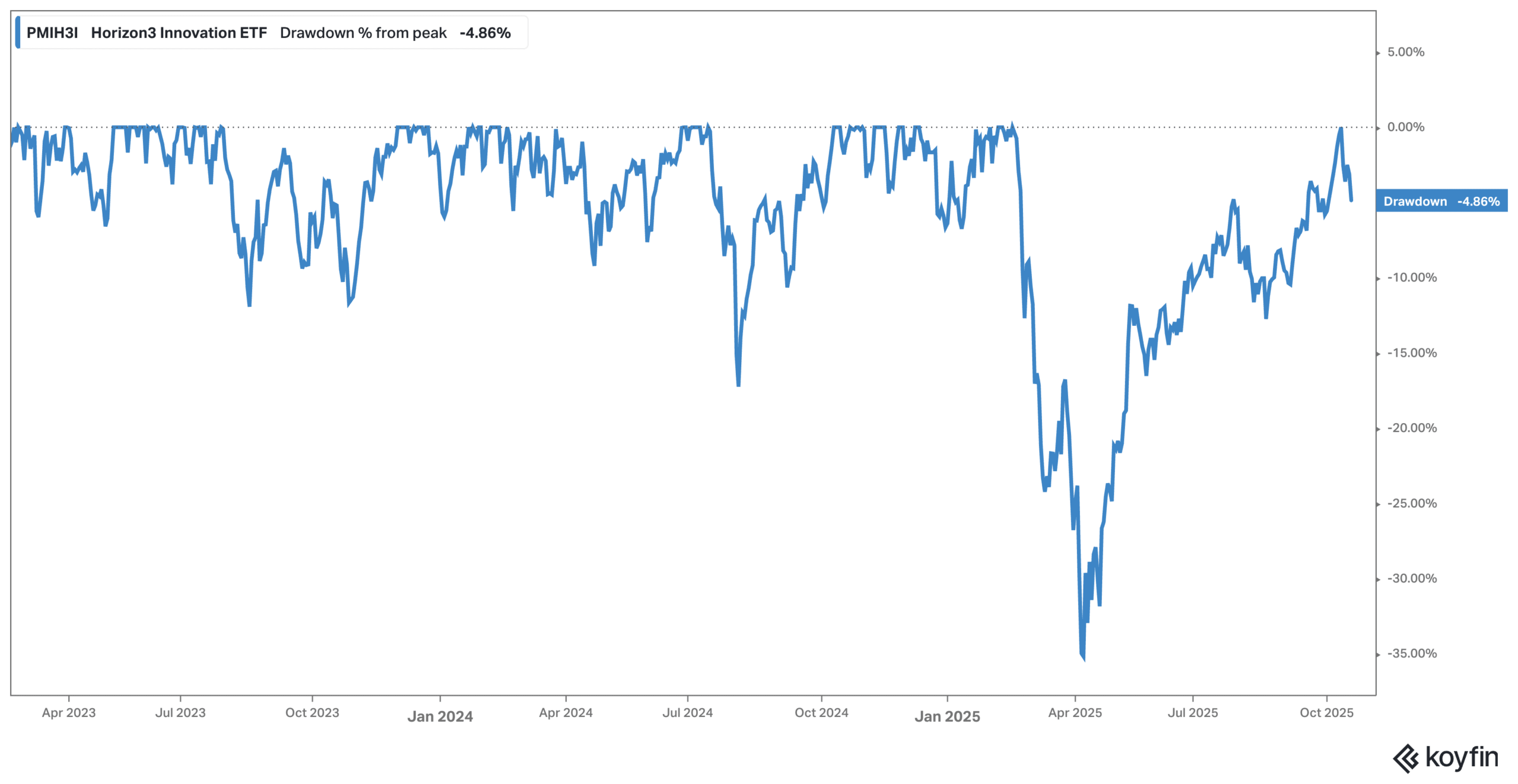 Data fra de J.P. Morgan og Bloomberg viser også, at det gennemsnitlige intraårige fald siden 1980 har været omkring 14 %. Data viser også, at det store amerikanske S&P 500 indeks alligevel har sluttet året i plus i 75% af årene. Det ser lige nu også ud til at blive tilfældet for fonden Horizon3 Innovation kl n trods et kursmæssigt tilbagefald, som den 7. april ramte et midlertidigt fald på 35%.